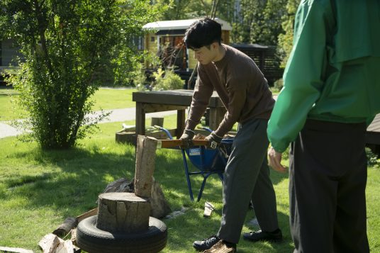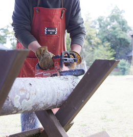 気持ちの良い青空の下で軽く薪割り体験してみましょう♪
